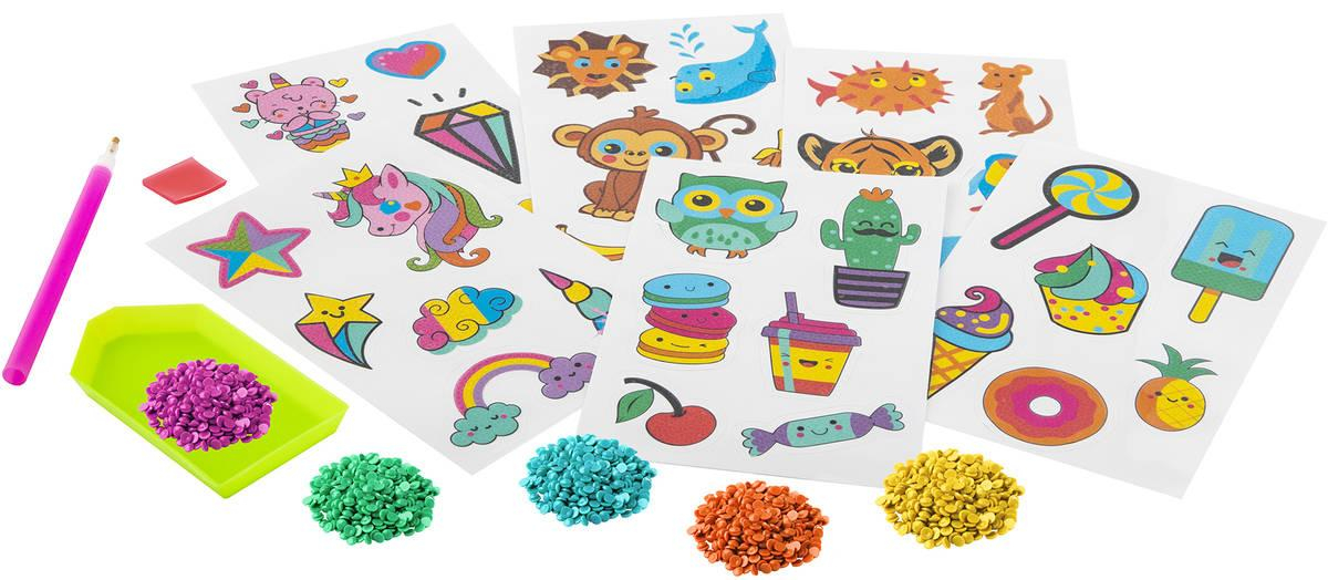 GRAFIX Sada na lepení kamínků s aplikačním perem. Ozdob si samolepky barevnými kamínky. Kreativní set Diamond Painting ve třech variantách provedení. Baleno v krabici. Návod: Odstraňte ochrannou folii ze samolepky. Jednotlivé diamanty přenášejte pomocí pera na lepivá místa na obrázku. Poté perem přimáčkněte na samolepku. Rozměry balení (š v h): 13 x 18 x 2cm Varianty provedení: safari, cukroví, jednorožec Obsah balení: 2 archy samolepek, 9 barev diamantů, pero na aplikaci, kalíšek na vysypání, vosk Cena je uvedena za 1 balení - sadu hračky Hračka je vhodná pro děti od 6 let Pokud máte zájem o konkrétní druh nebo barvu výrobku, specifikujte to, prosím, do poznámky v objednávce.