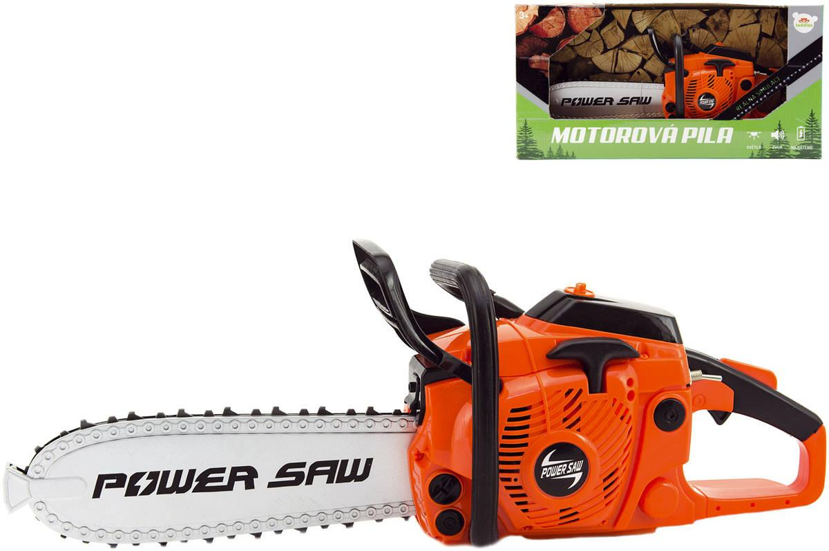 Plastová funkční motorová pila pro děti. Řetěz se otáčí. Hračka na baterie, se světlem a zvukem. Baleno v openboxu. Při práci vydává realistické zvuky a světělné efekty jako skutečná pila při ořezávání stromů a větví. Nastartováním a přidáním plynu se roztočí řetěz, na baterie, v krabici. Pomáhali jste někdy tatínkovi nebo dědečkovi na chatě nebo chalupě s kácením starého stromu? A používali u toho řetězovou pilu? Pokud ano, budete tedy určitě znát tento nástroj, který teď můžete mít i vy. Na rozdíl od velké pily, si s touto neublížíte. Ale vyzkoušet si jí stojí určitě za to! Rozměry balení (š v h): 42 x 21 x 11cm Rozměry dětské hračky (d): 41cm Materiál: plast Baterie: 3x AA 1,5V (nejsou součástí) Vhodné baterie můžete k výrobku dokoupit na našem e-shopu. Cena je uvedena za 1 kus hračky Hračka je vhodná pro děti od 3 let