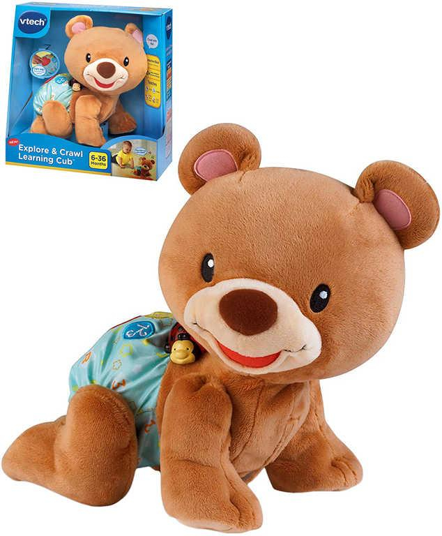 **** Rozkošný zvídavý medvídek povzbuzuje batolata i menší děti k pohybu a hře na podlaze. Po stisknutí srdíčka na zádech plyšáka, říká medvídek roztomilá slova a fráze a přitom pomalu leze. Medvídek učí poznávat barvy, tvary a hraje písničky. Zazpívá 5 písniček a zná přes 50 slov a frází. Medvídek je veselý kamarád, který svým pohybem i roztomilostí přitahuje pozornost dítěte, a zároveň ho blikajícími světly vyzývá k interakci. Pro děti od 6 měsíců. Hračky pro miminka mají krásný vzhled, jsou lehké a navíc fungují jako aktivní hračky - stimulují dítě vizuálně i prostřednictvím hmatu. Kus výška v cm 30 Kus šířka v cm 26 Kus hloubka v cm 18 6m+