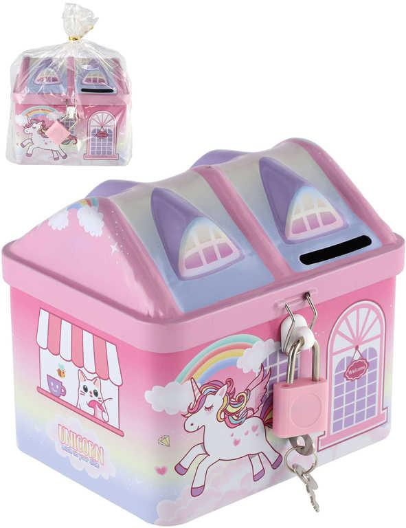 Položku Pokladnička domeček 11cm s jednorožcem plechová se zámkem a klíčky růžová naleznete i v těchto kategoriích: